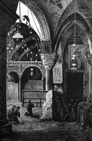 The Grotto of all grottos is the Holy Sepulcher in Jersusalem, where an ancient tradition teaches is the center of the world. It is the very spot where Adam was formed by God on the sixth day of creation, where Adam and Eve dwelt after their expulsion from Paradise. It was also the place of their burial. It became known as the "Cave of Treasures" because therein was stored not only the bones of our first parents but also gold, frankincense, and myrrh. Later, this became Golgatha, the place of the skull, the very place where His Majesty, Jesus Christ the Son of God, died and was buried and rose again on the third day. This has an echo in the Gospels: "The kingdom of heaven is like unto a treasure hidden in a field. Which a man having found, hid it, and for joy thereof goeth, and selleth all that he hath, and buyeth that field" (Matt. 13:44). That field is time and space and the treasure is all that took place on and under Golgatha. And so, of the Treasure found here, God the "householder, ... bringeth forth out of his treasure new things and old" (Matt. 13:52).